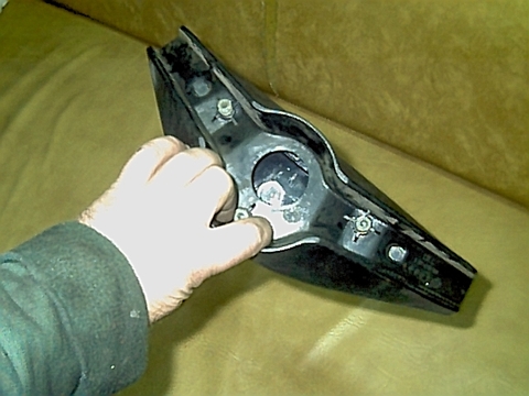 En su parte trasera esta el orificio que nos deja llegar a los contactos donde cuidadosamente soldaremos los cables para conectarlos a los originales del volante.