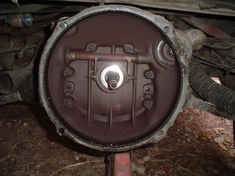 Esta es la caja de cambios de mi Kombi la Abuneta, en este caso es una Kombi Tipo2 Argentina, como se puede ver tiene puente y soporte de patas de goma sobre el chasis, esto es porque lleva el motor Colgando de la caja de cambios cosa que no se vio en todos los modelos de Kombis Tipo2 en el mundo pero si en las que entraron a mi País ya que fue el único sistema de anclaje de motor, en mi caso procuro que esas patas de gomas estén siempre bien ya que aunque estén rotas o muy blandas y aplastadas el motor funciona igual salvo porque queda mas bajo o torcido en el contorno del sello del habitáculo, por eso me preocupo que eso no suceda así no entra calor ni demasiado polvo por los costados del motor, por eso siempre que bajamos el motor es recomendable revisar estos soportes, levantando la caja de cambios y viendo si están despegados o si están aplastados.