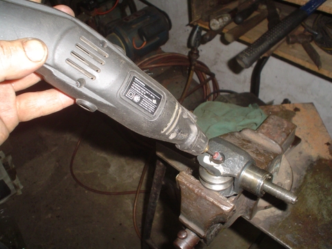 Para sacar el viejo perno como viene remachado debemos con el Dremel comer la cabeza de uno de los lados hasta que quede delgada para su quiebre.