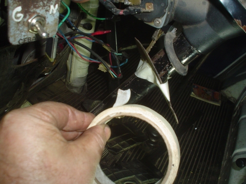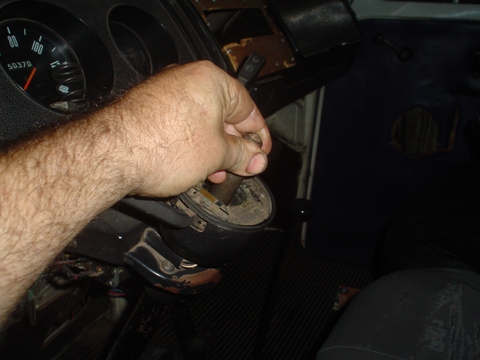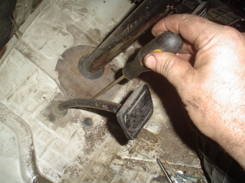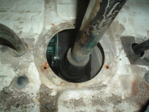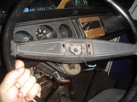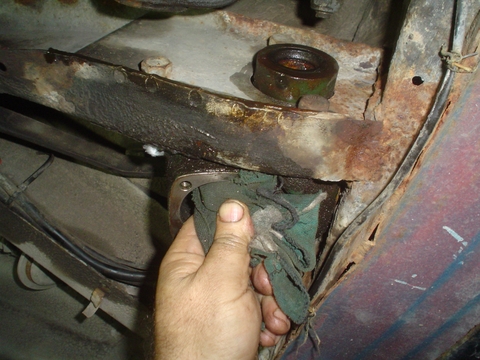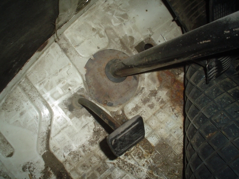 Cuando ya esta todo listo levantamos la alfombra del piso delantero y encontramos una tapa redonda que es la que nos permite sacar la caja de dirección en el caso de necesitarlo, esta tapa deja un orifico mayor al que usa la columna de dirección y será por donde vamos a cargar la grasa de la caja de dirección.