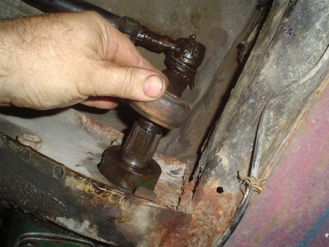 Desde adentro de la cabina tomamos la punta del barral por el lado de la tuerca del volante y controlamos el juego axial tirando y empujando y el radial rotando el barral, no debe tener juego axial y debe girar liviano.