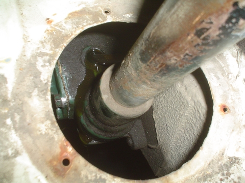 En esta imagen podemos ver como desbordo el llenado de la grasa, de esta forma nos aseguramos un buen trabajo en la caja de dirección.