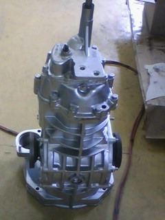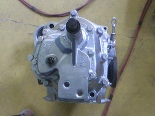 En esta imagen se aprecia mejor el puente delantero de anclaje, pero se ve también la gran similitud con las cajas de cambios convencionales de Kombis Tipo2, lo que nos deja una gama de repuestos por unos largos años en estas cajas de cambios, lógicamente serán repuestos caros por el problema aduanero, pero bueno por lo menos tendremos respaldo para nuestras cajas de cambios, eso si con 4 marchas jeje!!.