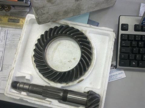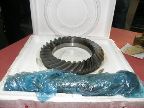 Este es el famoso piñón y corona, que hay que cambiar cuando cambiamos el motor o potenciamos el boxer, en este caso es una relación de 8 - 31, la mas larga conocida en el mercado, difícil de conseguir y no muy económica, esta relación de diferencial es la que se usa para mejorar notablemente una caja de cambios convencional, si bien no se cambian los engranajes de los cambios, todos las marchas se verán afectadas en su rendimiento, que daran los cambios mas largos y por ende la velocidad final en 4ª cambiara notablemente, solo debemos tener en cuenta que si no cambiamos el motor por una mas potente o no potenciamos el que ya tenemos la relación de diferencial larga será un problema que nos llevara a tener dificultades en vez de beneficios, porque la Kombi quedara gorda y pesada como los niños que pedalean en sus Bicicletas Grandes, o el pequeño hombre en la bicicleta del Basquebolista, o el Señor de Antaño en el Velocípedo, la relación larga de diferencial sin potencia de motor va en contra del beneficio que se busca.