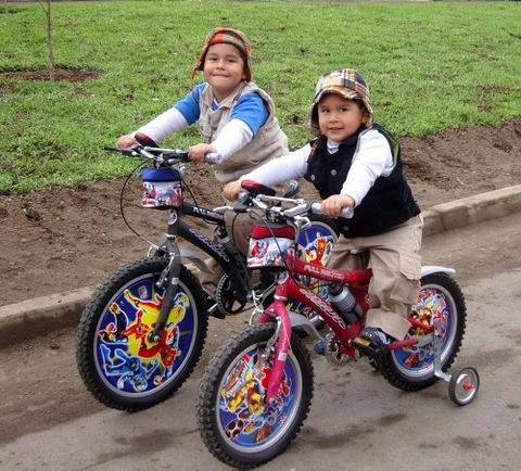 Por ultimo y sin ánimos de confundir, tenemos pequeños hombrecitos o sea niños en bicicletas mas grandes que aunque estén preparadas para ellos si los vemos pedalear lo harán lento y con un enorme esfuerzo!! incluso para poder desarrollar velocidad, ya que su poder de pedaleo es muy débil por su corta edad, pero eso no quita que el vehiculo podría viajar mas rápido, aunque en este caso si los pequeños ciclistas lo lograran, morirían del corazón por el esfuerzo que seria para ellos pedalear mucho y de forma continua para ir mas rápido, lo mismo que el Payaso en la pequeña Bicicleta pero a la inversa.
