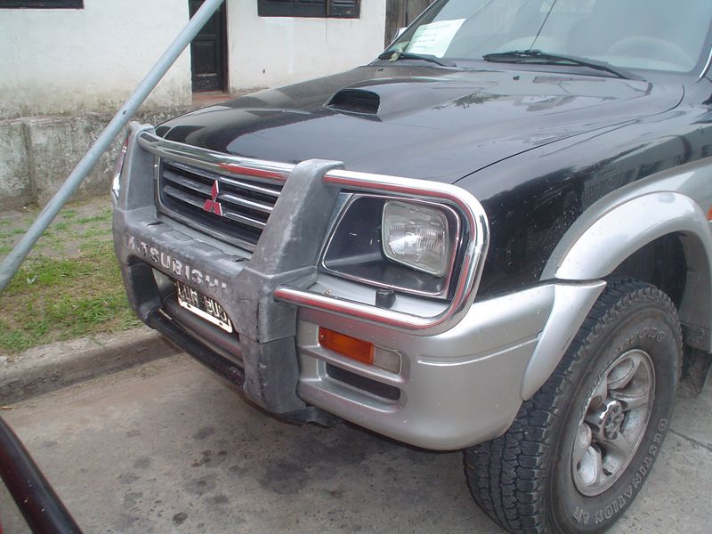 Este es otro modelo donde el desplazamiento del paragolpes es menor, pero la defensa similar a la anterior. Dicha defensa se la denomina Defensa balcón. Noten el candado en uno de los espárragos que sujetan la rueda de auxilio, esta seguridad es necesaria ya que es muy común que nos roben el auxilio si no tiene algún impedimento.