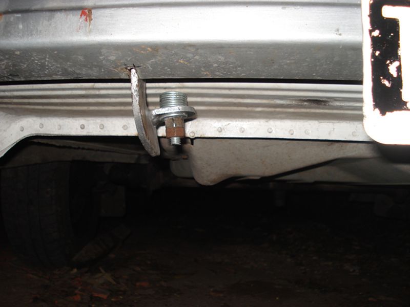 En este caso se optó por atravesar el pulmón de choque y utilizar una varilla enroscada para anclar la defensa en sus ganchos originales, estos ganchos antes deberían tener el paragolpes entre medio por eso tiene arandelas de suplemento para rellenar el espacio que dejó el paragolpes al colocarse por delante.