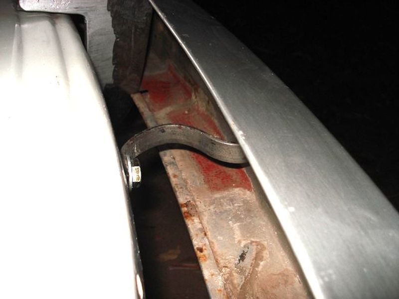 Luego se hicieron las pequeñas incisiones en la hoja del paragolpes, se encastro en la defensa y si soldó. Para reforzar el anclaje de las puntas se fabricaron unas Planchuelas con forma de S y se las amuro en los orificios originales y tornillos originales del paragolpes, estas planchuelas absorbieron el espacio que quedaba después de adelantar el paragolpes original.