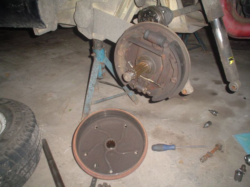 las piezas donantes de punta de ejes y frenos de una Kombi con Frenos a discos,