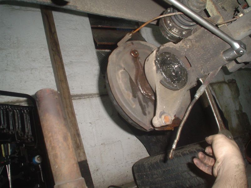 No olvidemos antes de aflojar todos los Bulones desconectar el Flexible de Frenos y el cable de freno de mano.