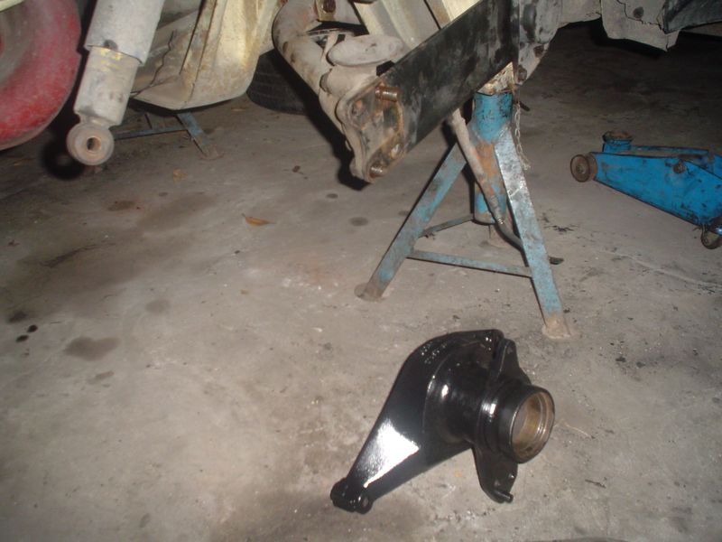 Tenemos la maza delantera Porta-Rueda lavada y pintada lista para cambiarle los rulemanes.