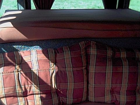 Utilizamos parte de los almohadones de respaldo para rellenar esta sección, que es opcional, los otros almohadones de respaldo son las almohadas de la cama grande. entran 4 personas talla normal cómodas, y queda el lugar donde esta el motor para todo el equipaje