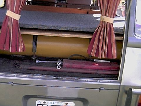 Aquí se ven los tubos de Gas, son 2 de 50 litros y ocupan todo el ancho de la Kombi VW, se puede ver la mesa entre los tubos y la tapa superior, ese lugar que queda en la cola es ideal para guardar repuestos y herramientas.