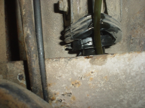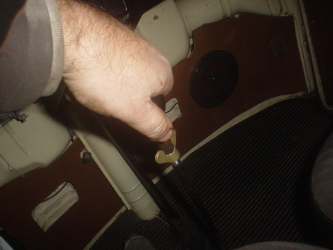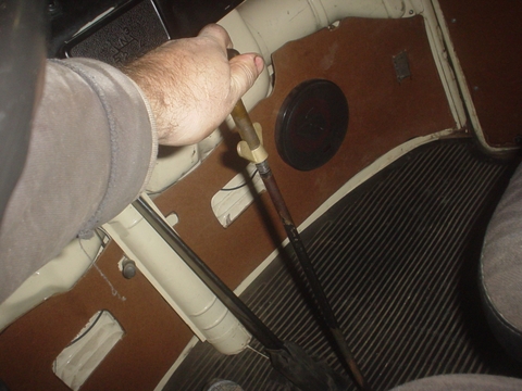 Luego la metemos por detrás del Dado de Selección de los Cambios en dirección a la cabina, a veces hay un pequeño fuelle de goma supuestamente para controlar las impurezas, pero que siempre o casi siempre esta roto y reseco, de ser así lo quitamos por completo porque si esta dañado empeora la situación ya que si entra agua no puede salir y trabaja el caño mojado, es mejor que si entra agua encuentre el aceite que le pusimos y se vaya como entro sin producir oxido.