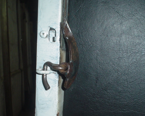 El garfio amigo!!, parece mentira pero algo tan simple como un gancho asegura el portón de tal forma que por mas que tengamos un terremoto no se abre!!!