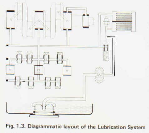 Como se puede ver en el dibujo que realice, el circuito de aceite trabaja presurizado es decir que hay presión permanente, por lo tanto solo puede circular el aceite que corre por los conductos y sale entre los metales del Árbol de Levas, Cojinetes de cigüeñal y biela, y por los botadores hacia las varillas de válvulas y finalmente por los balancines, todos son pasos muy reducidos que permiten la presión estable pero no deja que se infle ya que a propósito hay luz para que el aceite forme película y por supuesto por ahí sangra hacia el fondo del carter otra vez, donde chupa la bomba y vuelve a empezar el ciclo.