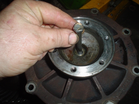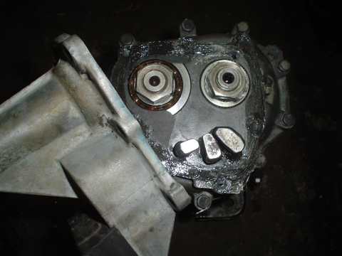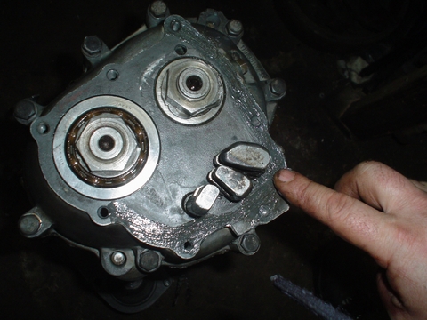 En esta imagen se ven los Tuercones de 32 mm que se apretaron igual que se aflojaron poniendo 3ª y Marcha Atrás al mismo tiempo en la caja calada, van apretados con 6 kilos o mas, y no se aflojan 1/8 como dice en el manual ya que se refiere a otro modelo, en estos modelos los ejes deben quedar bien apretados y asegurados doblando la arandela que tiene traba, cuando estos bulones se aflojan son causantes de muchos problemas ya que los ejes toman juego axial descalibrando todos los sincronizados.