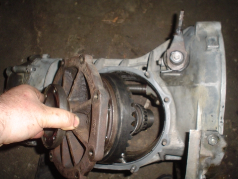 Sacamos las tapas laterales que cubren el diferencial con tuercas 13mm, recuerden primero sacar el tornillo de 13 mm que sostiene la copa de la homocinética, del lado opuesto a la palanca del embrague, el diferencial en las Tipo2 o Escarabajos saldrá por el lado izq mirando a la caja como colocada en el vehiculo, dentro de esta cavidad tendremos 4 bulones de 15mm que sujetan la cola del lado de adentro, los tenemos que sacar también, es ahí cuando tendremos acceso a la cola con todos los engranajes retirándola para afuera de la caja de cambios, de ninguna manera deben intentar sacar las trabas de la selectora por debajo de los tapones, eso no se hace, eso queda armado.