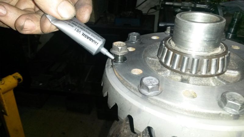 Para montar la corona nueva 31 dientes debido a que vino con orificios en el Porta-Corona de 10 mm y nuestros bulones son de 9 mm los pegamos con TRABASIL, como comentamos anteriormente estos orificios son para Tornillos de Escarabajos ya que en Brasil esta modificación esta dedicada a ellos, pero nosotros en Argentina la adaptamos a las Kombis VW.