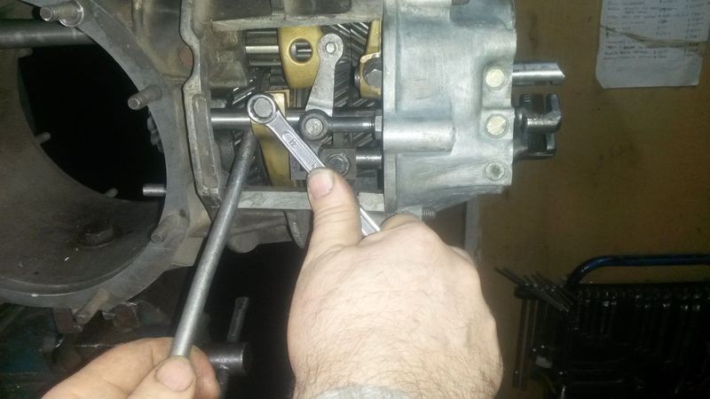 Cuando montamos todos los ejes y estamos listos para calibrar los cambios es momento de colocar el engranaje de marcha atrás y su canasta.