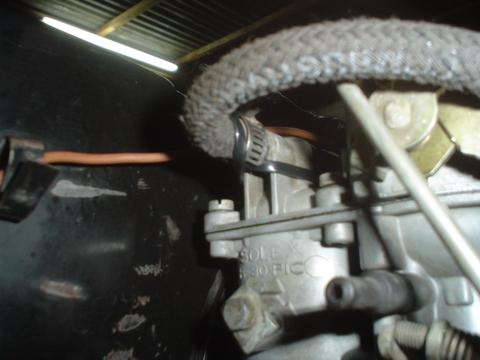 Esta otra manera de amarrarlo es una idea para los que tienen un Carburador con muchos años en uso de origen Alemán que también tiene el mismo anclaje en su conector.