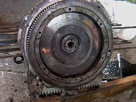 Vamos a abrir el block para ver que nos encontramos, sacamos el embrague que lamentablemente esta roto por los sacudones que pegaba el motor al faltarle la pieza de la caja que soporta la tripa de embrague.....