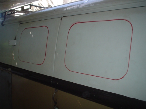 Después de escuchar a muchos usuarios de Kombis vw que necesitan colocar ventanas y en el 2013 no consiguen ventanas curvas les dejo este tutoríal de como colocamos con mi hijo Matías ventanas rectas y que podrían ser de cualquier casa rodante, lo importante que no sean mas grandes de la medida recomendada, para los portones 30cm x 40cm, y para los laterales de 30 x 50 no corta parante y si quieren algo mas panorámico al estilo Bay Windows pueden cortar el parante del medio como en las imágenes anteriores del lado del panel, pero traten de no superar los 39 cm de alto así no pasan para el panel inferior cortando la moldura de contorno de la kombi, esto podría hacerse con ventanas curvas que acompañen la forma de la Kombi pero con ventanas rectas limítense a no pasar para abajo de la moldura central.