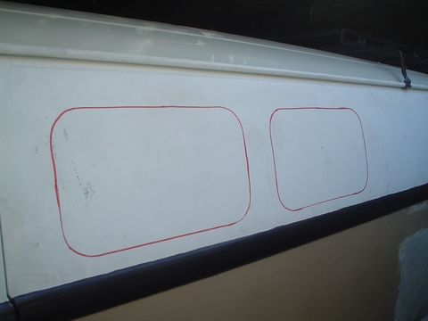 Así nos va a quedar la marca en la Kombi esta marca será justa al contorno de embutir de la ventana.