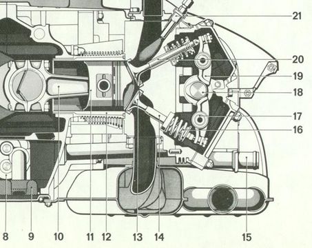El motor es Boxer cilindros horizontales enfrentados en este caso 6 para dar la potencia que todos conocemos, pero lo único que cambia en este boxer es que tendrá árboles de levas a la cabeza con una torre de balancines que esta formada por una tapa adicional a las de cilindros, (mas adelante lo veremos), curiosamente estos árboles de levas se manejaran con cadenas de distribución pero en su comando principal tendrá un engranaje idéntico al del árbol de levas de una Kombi VW.