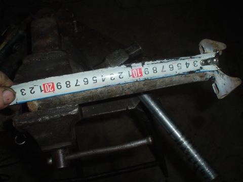 La medida que me día como justa es de 12cm desde que apoya en el caño que lo va a sostener hasta la punta útil en el apoyo de la rueda.