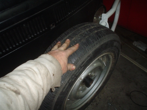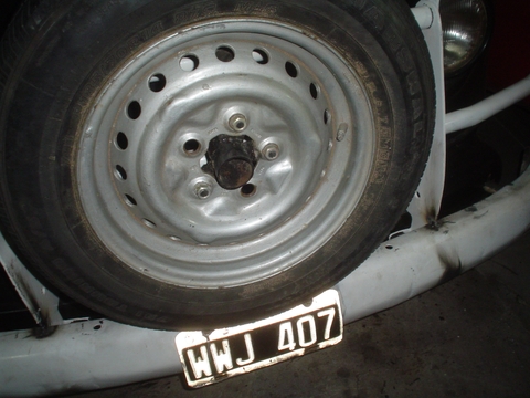 Esta Rueda al ser 185 70R 14 queda mas adentro y mas abajo por lo tanto es la recomendada para usar de auxilio en la parte frontal de la Kombi.