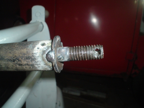 Soldamos el Bulon una arandela de apoyo para la yanta y le hicimos un orificio en la punta al Bulón para meter un pequeño Candado, nada que impida el robo de la rueda de auxilio para profesionales pero que desestime a algún Ocasional amigo de lo ajeno con una llave de ruedas en la mano.