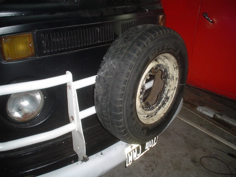 El paragolpes queda a la mitad del Neumático, a veces esto puede traer problemas en las verificaciones técnicas pero en este caso lo podemos desmontar antes de ir a revisar la Kombi.