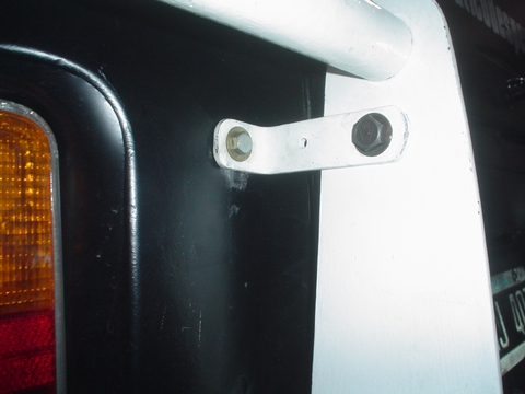 La defensa Trasera nos pide un orificio en la carrocería para abulonar una planchuela que sujeta la parte alta ya que no lleva tensores en la parte baja, si bien podríamos colocarle tensores la vibración que tiene el paragolpes trasero es mayor, así que es importante sostenerlo y evitar que se mueva porque si lo hace se rompen los bulones y soldaduras con el tiempo.