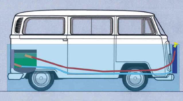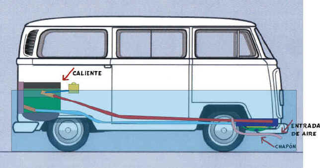 de haber visto la Kombi que muestro a continuación que tiene un motor 1.6cc Diesel y para poder Refrigerarlo, colocaron el Radiador debajo de la