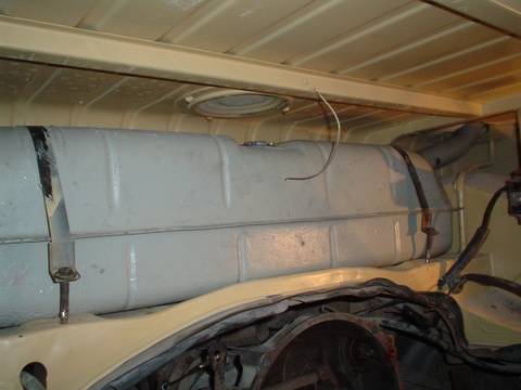 En esta imagen esta el tanque instalado definitivamente, es una Kombi 1981 Tipo2 modelo Brasil, el tanque quedo muy bien, usamos el venteo del mismo tanque conectado a el caño de bajada o como en nuestro caso cerramos el venteo original que esta al lado del marcador de combustible taponándolo de la misma forma soldando una tapita, y le fabricamos uno en un lateral de la boca del llenado si no lo tiene, que sea fino para una manguera que viajara por dentro del drenaje de la bandeja de carga, la idea es que salga y entre el aire del tanque, si la tapa original tiene orificio de venteo por ahí va a salir y entrar el aire, pero si llenamos mucho el tanque es posible que se ahogue, así que aunque ahora cargue 50 litros yo recomiendo no cargar mas de 45 litros o sea cargar hasta el primer corte de la pistola que serán unos 42 litros, ATENCIÓN!! recuerden que es importante evitar toda perdida o derrame de Combustible en la zona del motor.