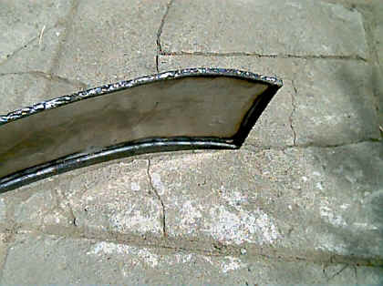 después de Marcar la Chapa con el cartón como molde, corte con mucho cuidado y le soldé a toda la vuelta el hierrito redondo de 1/4 dejando este ultimo como borde de la Visera.