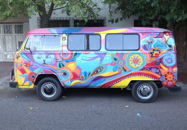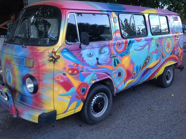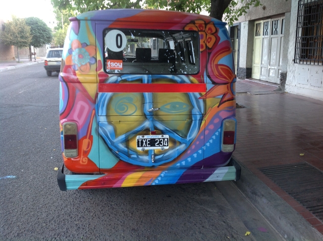 Esta kombi la tenemos desde el 2011 que la compramos como un furgón blanco en muy buen estado. Al tiempo le pusimos las ventanas y en Febrero de 2013 cumplimos nuestro sueño: una "kombi hippie" pero pintada profesionalmente. Los artistas responsables sor Graffiteros trabajan en Mendoza (CEES y Neat031). Se pueden decir muchas cosas sobre una kombi así, para nosotros es un sueño hecho realidad...y por la reacción de la gente, el sueño de muchos mas...